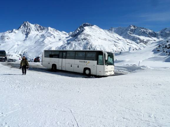 La stazione ferroviaria di Landeck-Zams si trova a circa 50 km di distanza. Autobus collegano la valle Kaunertal e il Ghiacciaio Kaunertaler. - Skibus