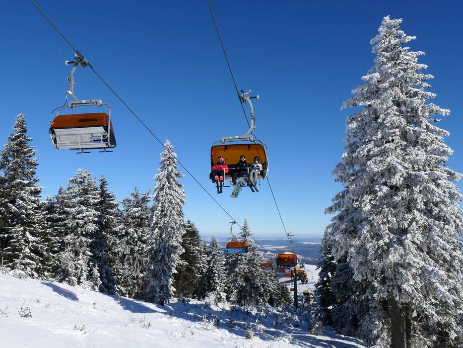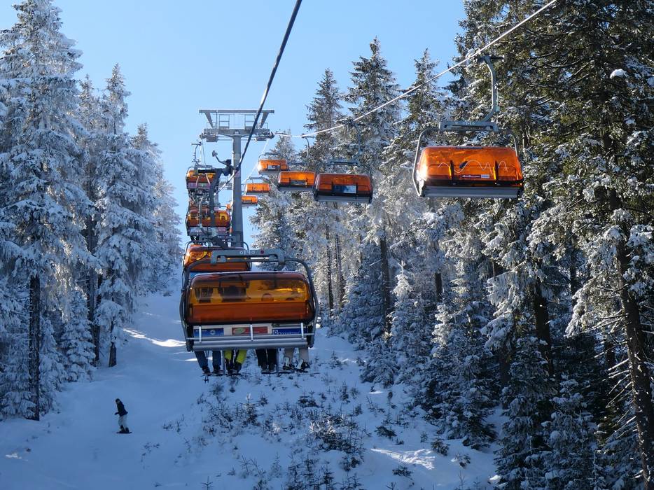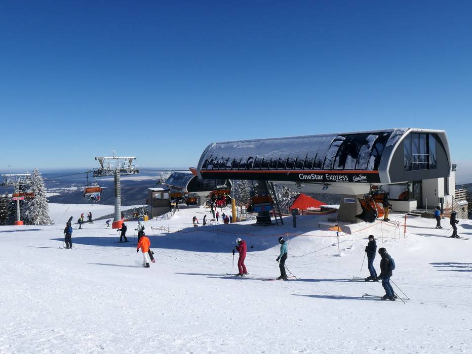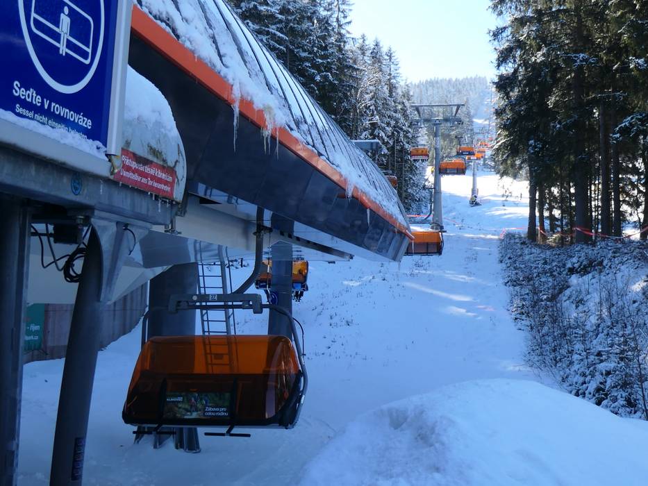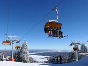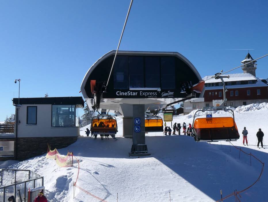 La seggiovia quadriposto CineStar Express è dotata di cupole di protezione arancioni contro le intemperie.