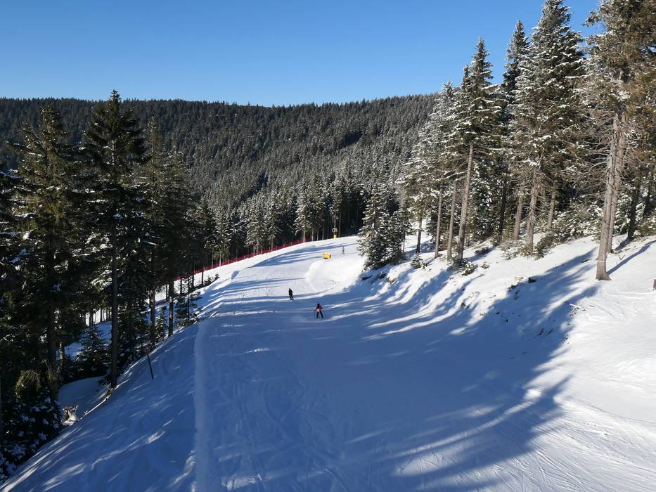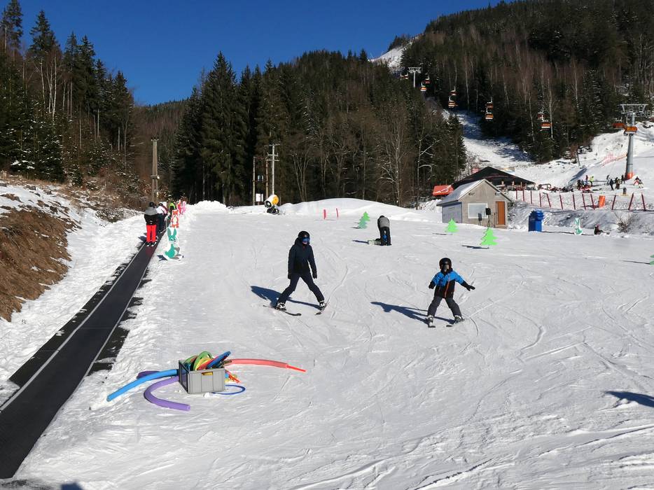 Klínovec è molto adatto ai principianti. L’area Dámska offre un terreno ideale per imparare: qui si trovano una scuola di sci con tappeti mobili (Max/JPK), uno skilift privato e una pista facile lungo la seggiovia Dámska. Da qui si possono raggiungere anche altre discese facili.
