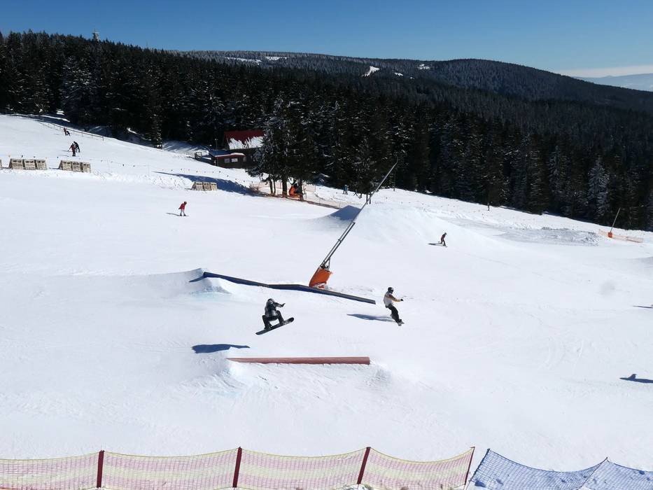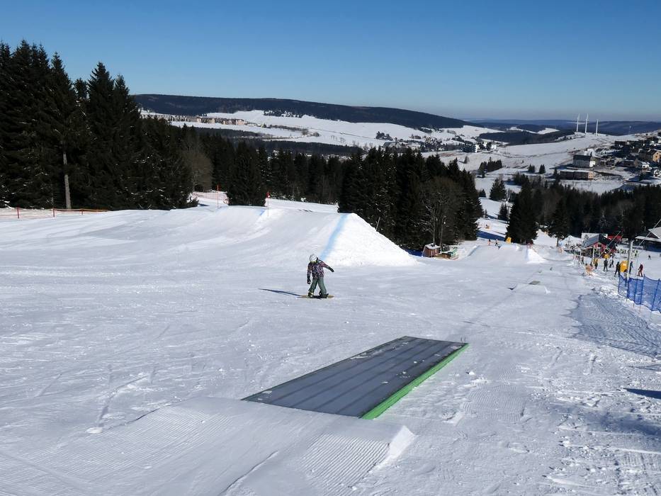 Lo snowpark di Neklid è uno dei più antichi della regione e offre numerosi ostacoli e kicker.