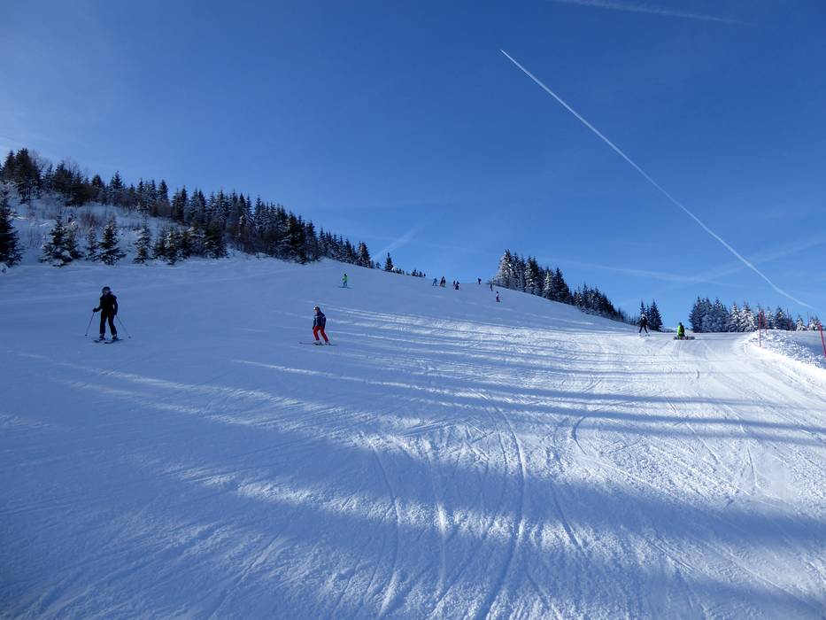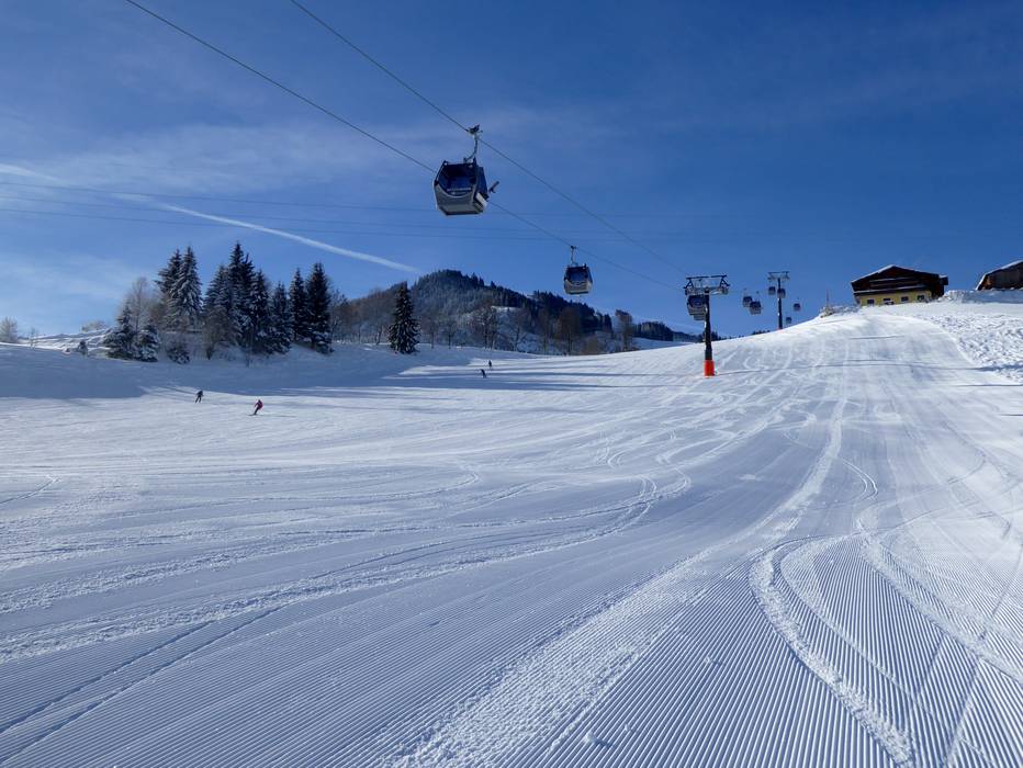 La bella e ampia pista parte dalla Almbahn al Maiskogel.