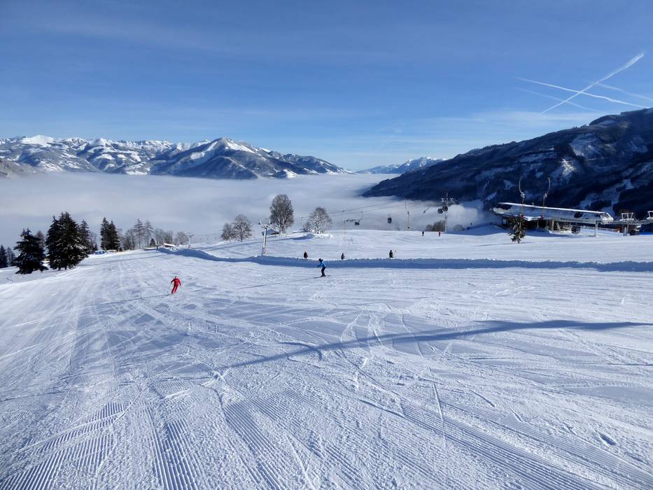 Dalla stazione a monte della Almbahn sul Maiskogel si scende per tutta la lunghezza direttamente fino a valle a Kaprun.