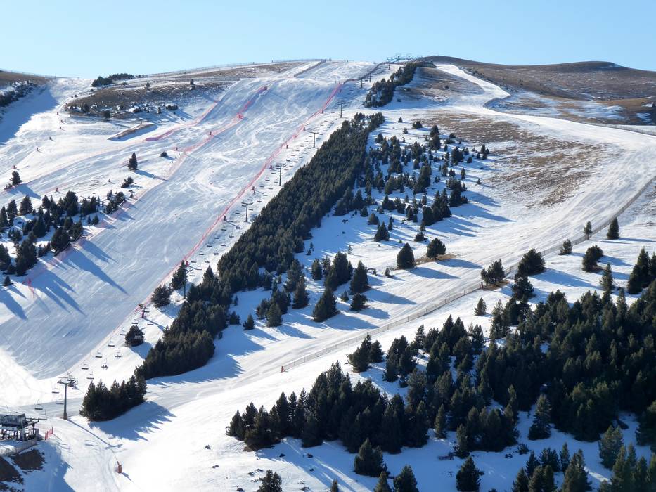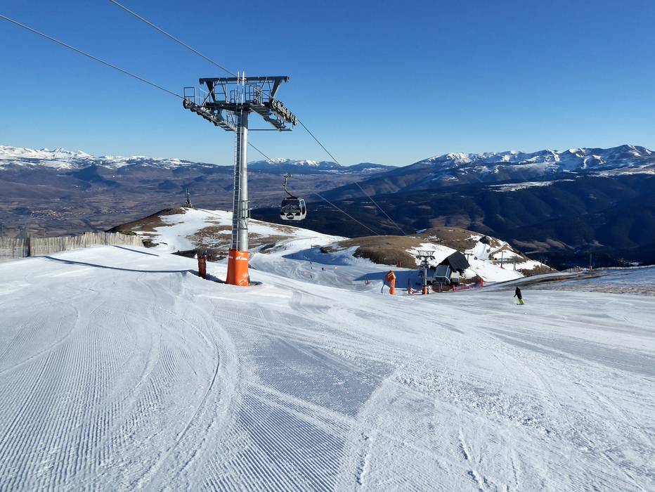 Le discese a valle innevate conducono a La Molina e Masella.