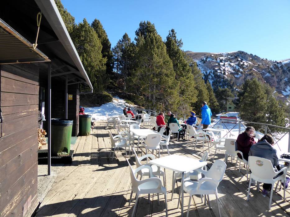 Il caratteristico rifugio Cap del Bosc offre snack e bevande. Nei giorni freddi riscalda un camino e nelle belle giornate invita la terrazza soleggiata.