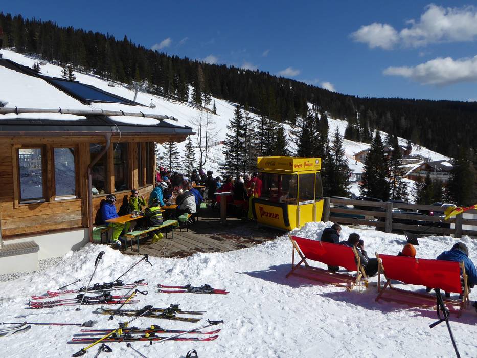 La baita più caratteristica del Lachtal! Il Futtertrögl serve piatti regionali, grigliate e pizze in un'atmosfera accogliente e tradizionale. Per gli amanti del sole ci sono lettini sulla splendida terrazza nella valle riparata dal vento.