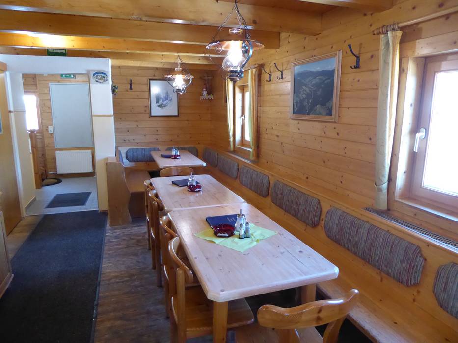 Il rifugio familiare è un po’ nascosto, ma ricompensa gli ospiti con una sala accogliente e una splendida vista panoramica dalla terrazza a 1.902 metri di altitudine.