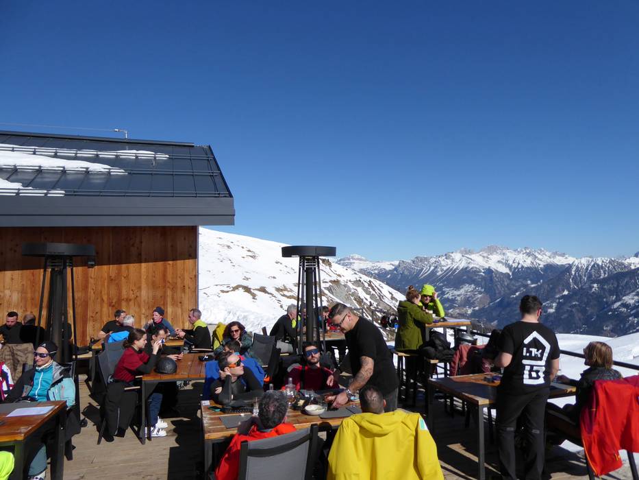 Il rifugio per intenditori offre una grande terrazza soleggiata, una zona self-service e un ristorante con servizio al tavolo. Qui si possono gustare deliziosi antipasti, raffinati piatti di carne, selvaggina e pesce, oltre a torte fresche fatte in casa. Da provare assolutamente gli spaghetti ai frutti di mare.
