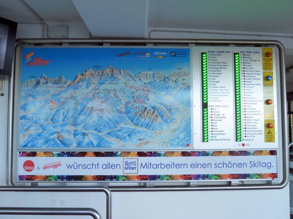 | Nota: Gli orari d'esercizio sono indicazioni generali fornite dal comprensorio sciistico Latemar - Obereggen/Pampeago/Predazzo e possono variare in funzione di circostanze particolari, giorni settimanali, vacanze scolastiche e festività. | |