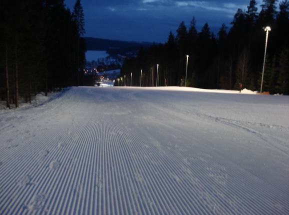 Prima dello sci notturno, le piste vengono nuovamente preparate.