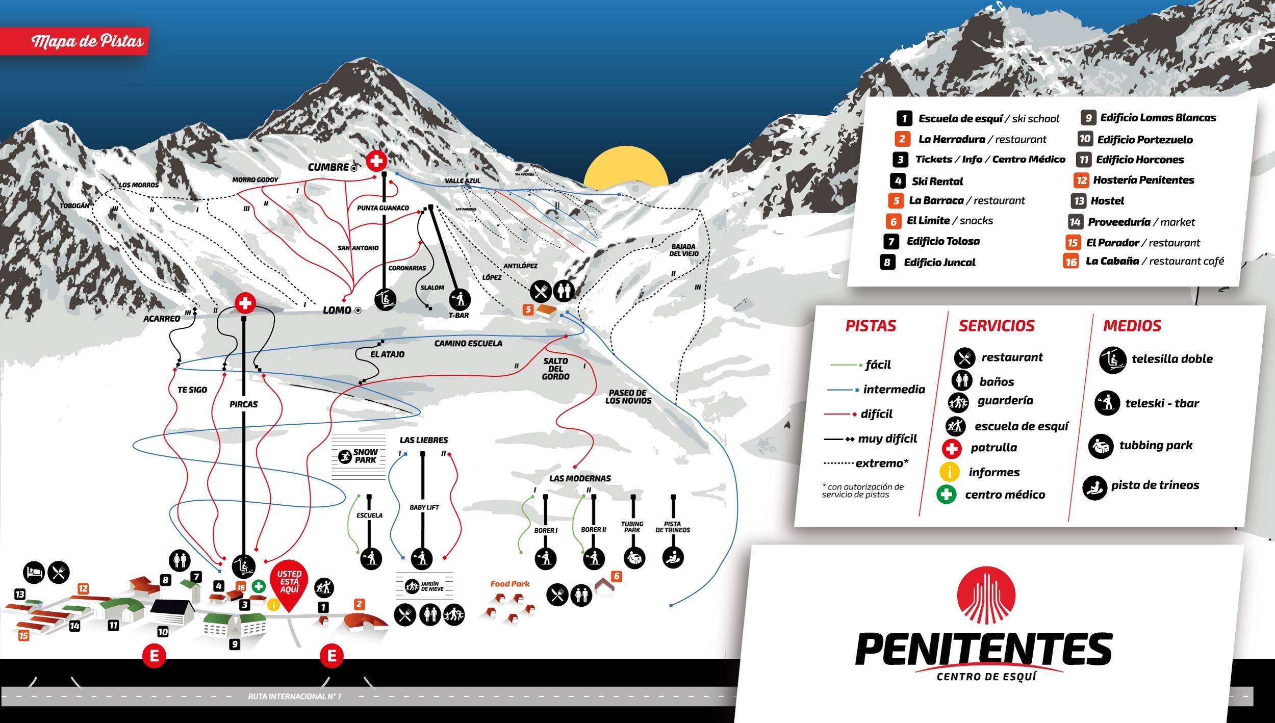 Mappa delle piste Los Penitentes Stagione ---- !!! closed temporarily/vorübergehend außer Betrieb