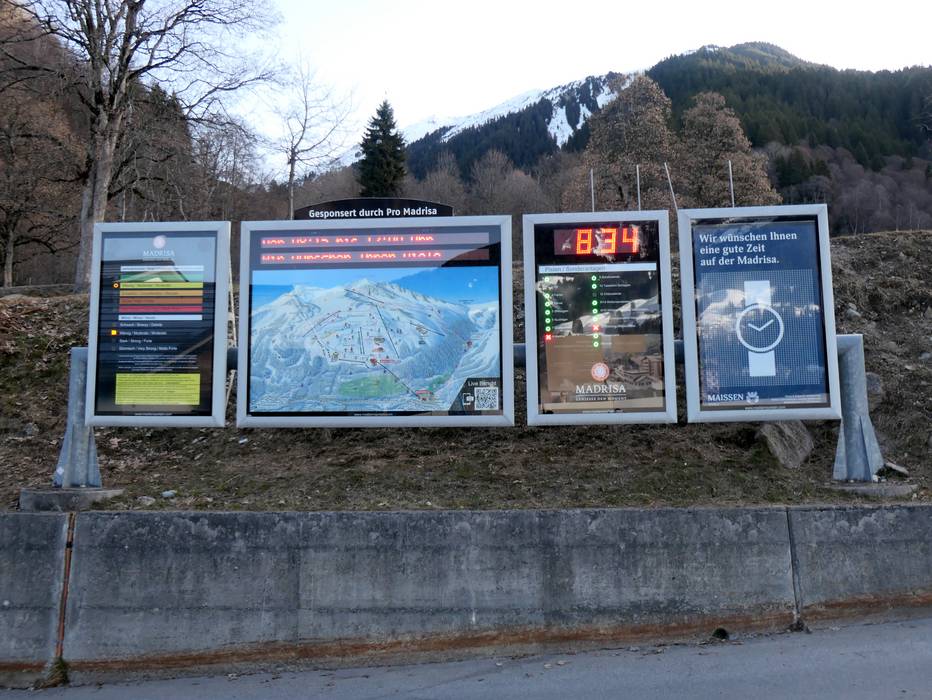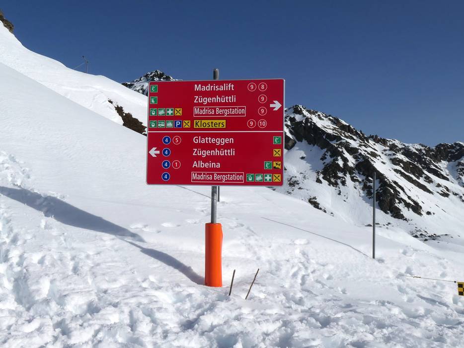 Orientamento (Mappa delle piste, Pannelli informativi, Segnaletica) e sicurezza nel comprensorio sciistico Madrisa (Davos Klosters)
