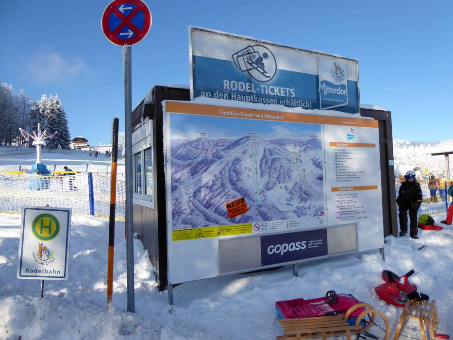 | Nota: Gli orari d'esercizio sono indicazioni generali fornite dal comprensorio sciistico Mitterdorf - Almberg e possono variare in funzione di circostanze particolari, giorni settimanali, vacanze scolastiche e festività. | |