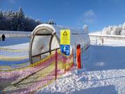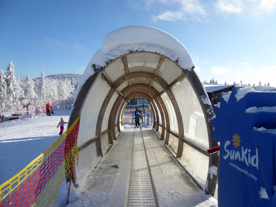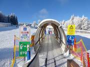 I tappeti mobili nel JuniorSkiZirkus sono 3 tappeti coperti con una lunghezza di 76 m, 66 m e 15 m.