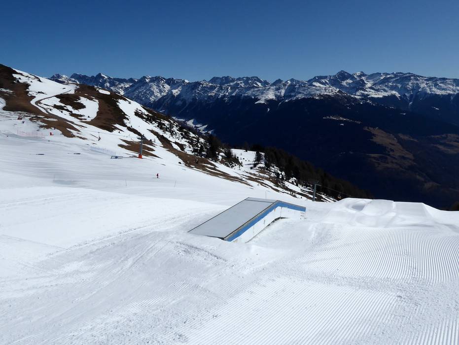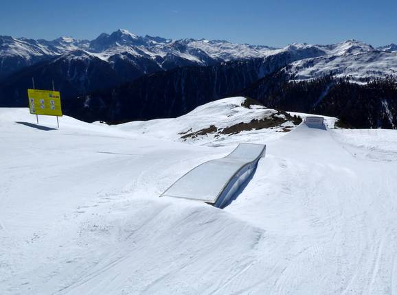 Lo snowpark sulla montagna d'avventura Watles offre un fantastico setup sia per principianti che per esperti. Il funpark è facilmente raggiungibile con la seggiovia quadrupla superiore. Inoltre, il parco offre una splendida vista sulla Val Venosta.