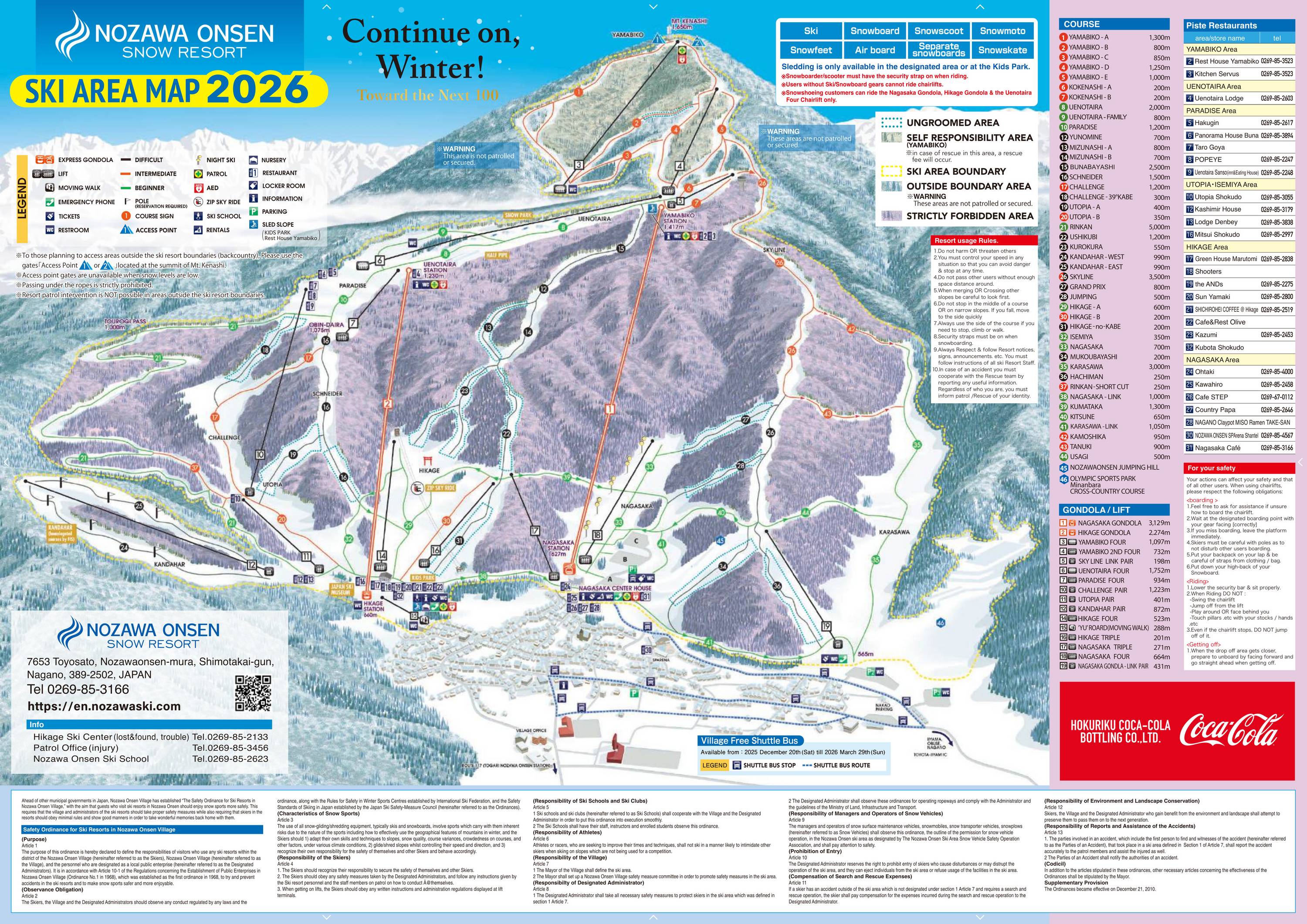 Mappa delle piste Nozawa Onsen Stagione 2025/2026