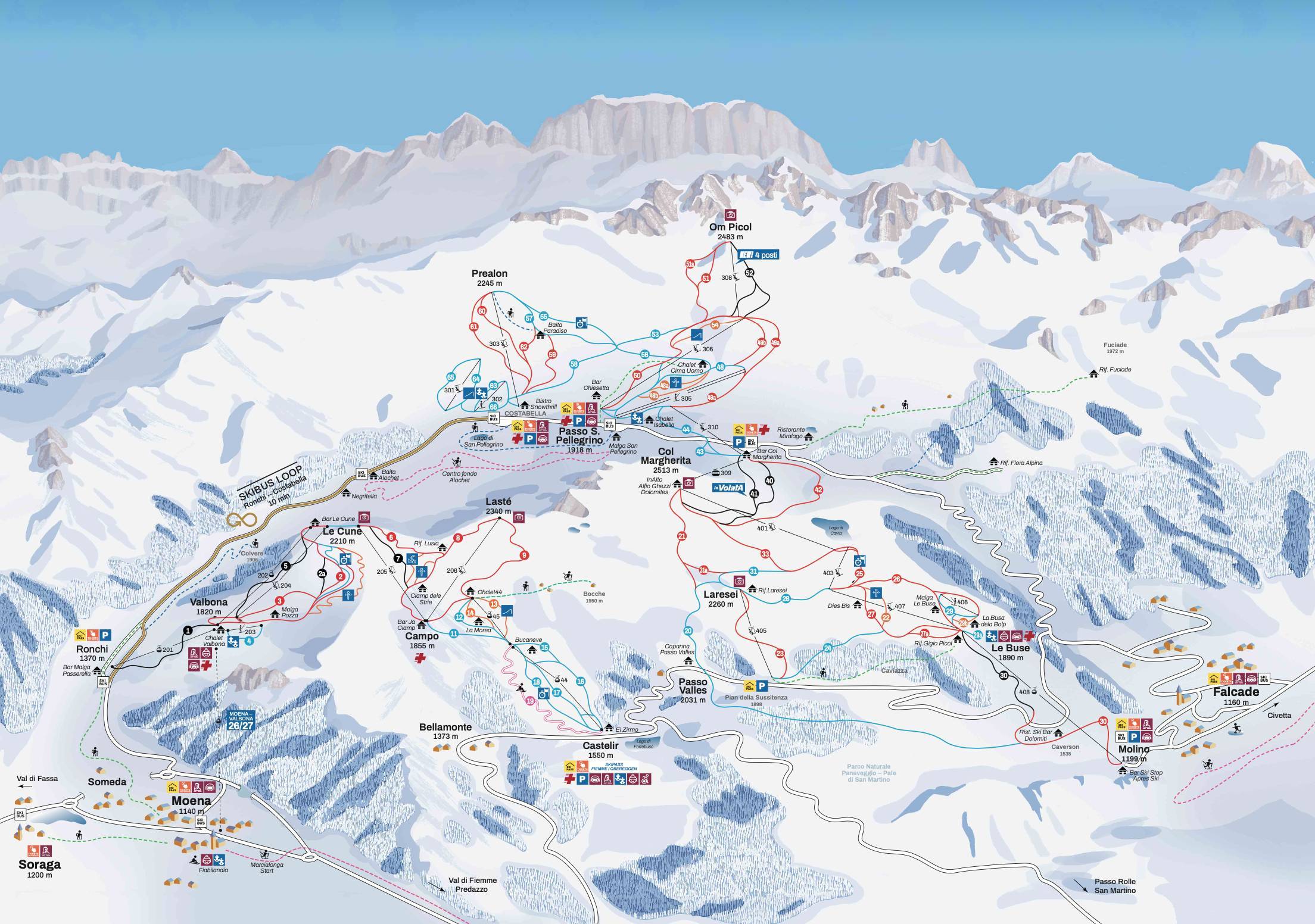 Mappa delle piste Alpe Lusia / San Pellegrino Stagione 2025/2026