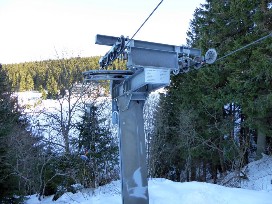 Sciovia ad ancora/Skilift con piattelli nel comprensorio sciistico Pec pod Sněžkou