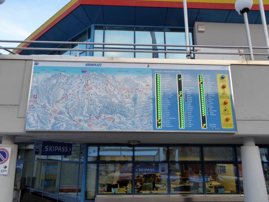 | Nota: Gli orari d'esercizio sono indicazioni generali fornite dal comprensorio sciistico Plan de Corones (Kronplatz) e possono variare in funzione di circostanze particolari, giorni settimanali, vacanze scolastiche e festività. | |