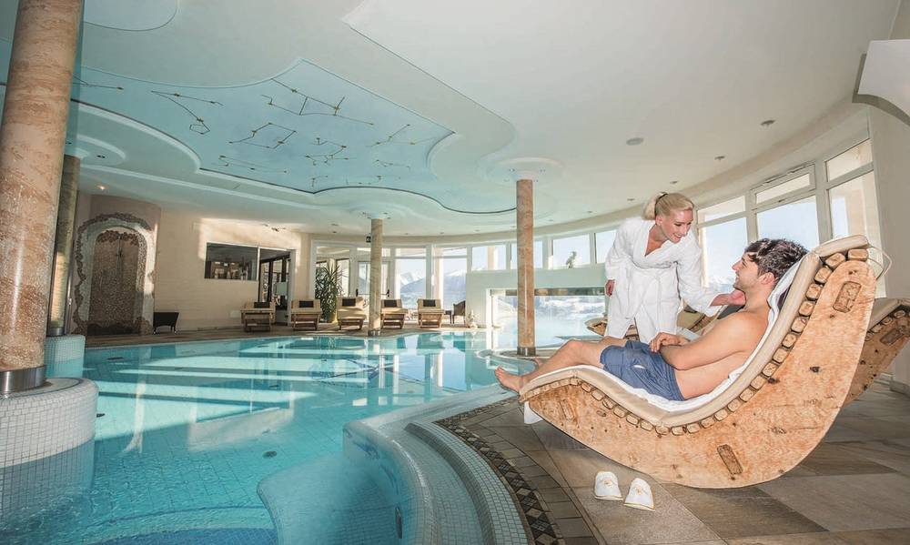 …è anche relax nella nostra Bären-SPA, escursioni con le ciaspole, yoga, acquagym, gettate di vapore nella sauna panoramica, lasciarsi cullare nella Sky Pool, sorseggiare vin brulé nella nostra Sky Lounge, piacevoli chiacchierate davanti al camino, puro piacere dall’Alto Adige… e molto, molto altro ancora…