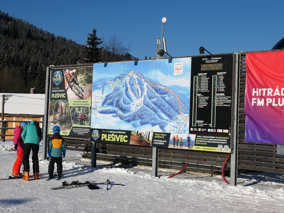 Orientamento (Mappa delle piste, Pannelli informativi, Segnaletica) e sicurezza nel comprensorio sciistico Plešivec - Abertamy