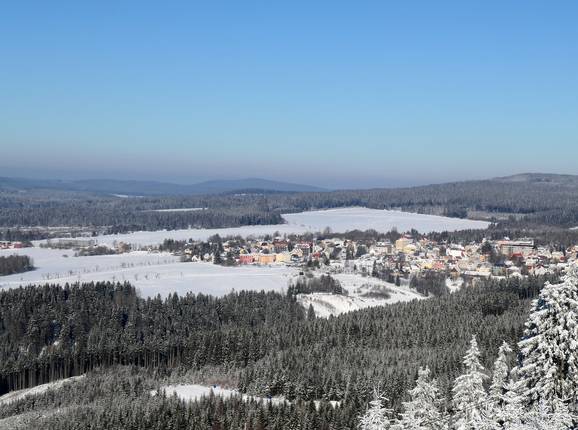 Nei dintorni di Abertamy, vicino all’area sciistica di Pleßberg (Plešivec), ci sono alcune piste da sci di fondo in terreno facile. I fondisti più esperti possono collegarsi alle piste verso Pernink, Horní Blatná e Boží Dar. In inverno non c’è garanzia di buone condizioni di neve.