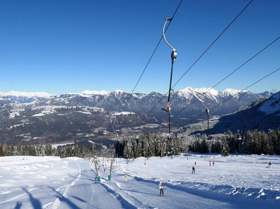 Nella zona sciistica di Nassfeld, quasi tutte le piste sono raggiungibili con comode e veloci seggiovie e cabinovie. Alcune seggiovie sono dotate di cupole di protezione contro le intemperie. Dalla valle di Tröpolach si può salire rapidamente al Nassfeld in tre sezioni con il Millennium-Express, una cabinovia da 15 posti.