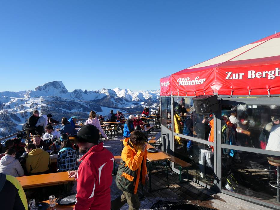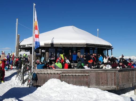 La Bärenhütte è conosciuta per il buon après-ski. Nel rifugio rustico l’atmosfera si scalda davvero nei fine settimana. Molti ospiti festeggiano fino a tarda notte, poiché spesso alloggiano proprio di fronte negli hotel di Tröpolach.