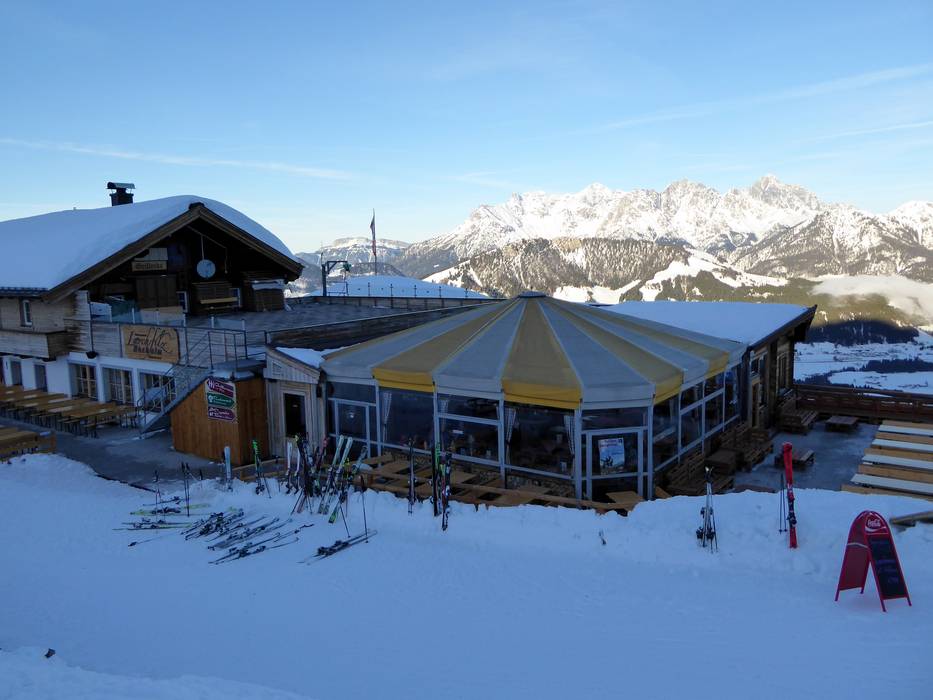 La location per feste a Hinterglemm direttamente sulla pista. Atmosfera e festa ogni giorno dopo lo sport invernale fino a tarda notte.