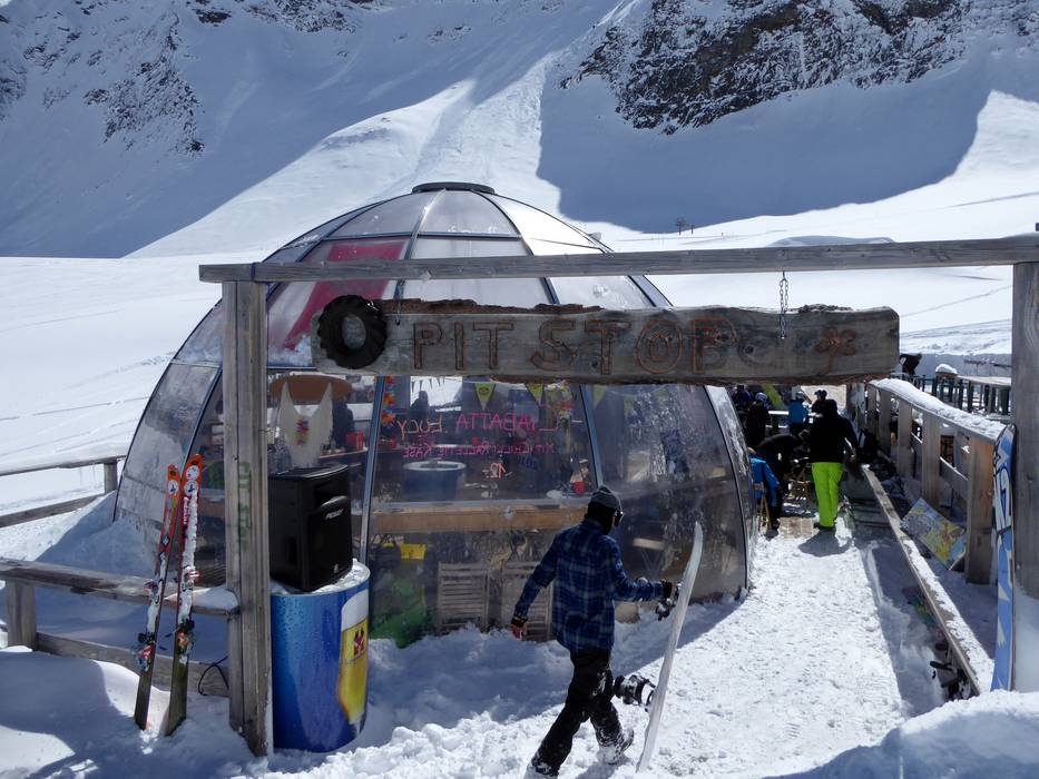 Nella "Skihütte" si conclude la giornata sugli sci in modo rilassato. Con finger food e specialità a base di formaggio si può gustare un bicchiere di vino. La Bar Lounge invita a soffermarsi. Sotto il grande ombrellone si può comodamente osservare la vita che si svolge sulla Gletscherstraße.