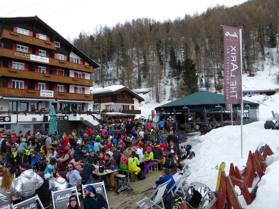 Dopo una giornata ricca di emozioni sulle piste, a Saas-Fee si può passare all'après-ski. Proprio ai piedi delle piste vi aspetta la Schirmbar The Larix. Sulla via della festa di Saas-Fee, la Gletscherstraße, si trovano altri locali dove fermarsi e festeggiare. Durante la settimana l'atmosfera è un po' più tranquilla. Nel fine settimana, invece, l'après-ski può durare anche più a lungo. Un momento clou è la tradizionale Season-End-Party, che si svolge l'ultimo sabato della stagione. Questa parata après-ski con DJ, impianto audio, dance contest e il Party Mobil è assolutamente da non perdere.