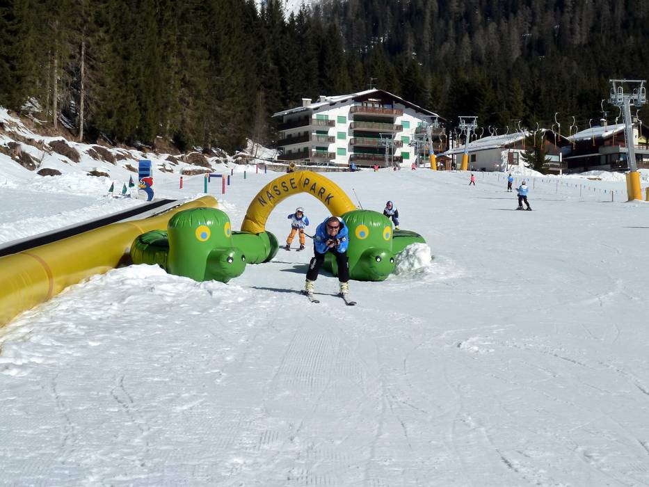 Il Nasse Park si trova direttamente nel paese di San Martino di Castrozza. Qui i più piccoli trovano tappeti mobili e un parco giochi. Proprio accanto, i due skilift a piattello Prà Nasse servono piste molto facili. Inoltre, c'è una pista da tubing con tappeto mobile.