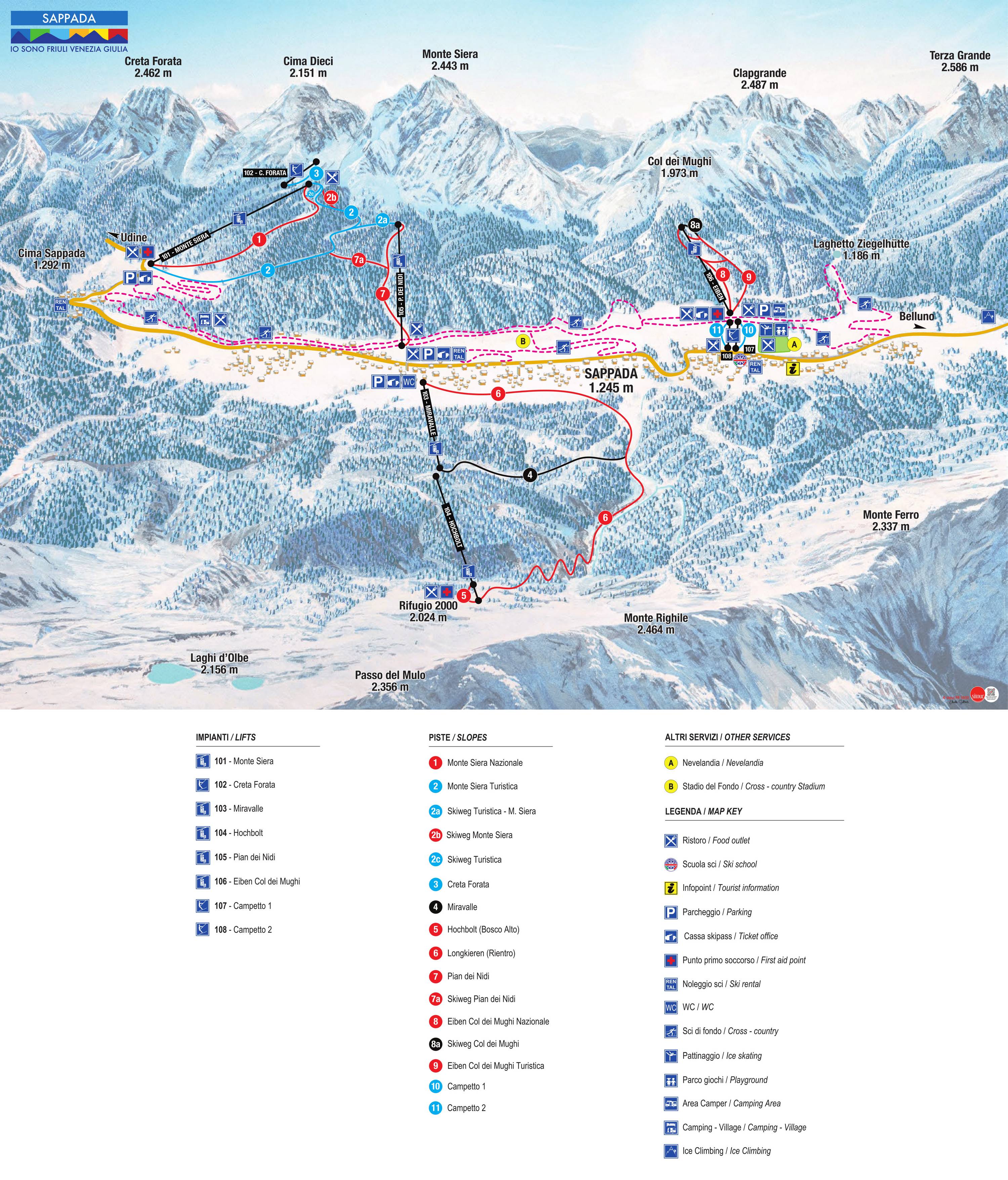 Mappa delle piste Sappada Stagione 2025/2026