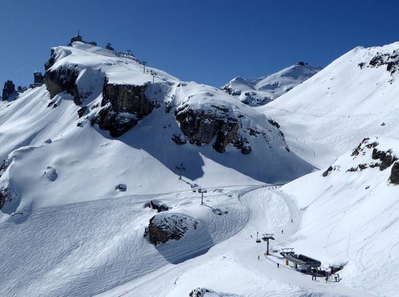 Quattro funivie consecutive portano gli ospiti dalla stazione a valle di Stechelberg, passando per Gimmelwald, Mürren e Birg, fino alla vetta dello Schilthorn a 2970 m. Se non ci sono tempi di attesa, la salita dura circa 30 minuti. Il viaggio sullo Schilthorn è molto apprezzato anche dai non sciatori, poiché li attende un panorama spettacolare sull’Eiger, il Mönch e la Jungfrau (Swiss Skyline).