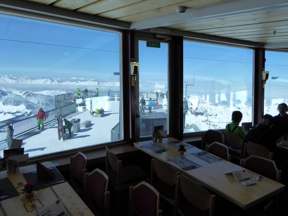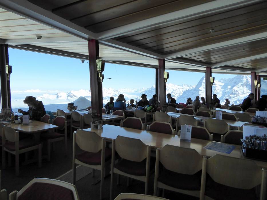 In circa 45 minuti il ristorante ruota attorno al proprio asse. La vista su oltre 200 cime, tra cui Eiger, Mönch e Jungfrau, è spettacolare. Il ristorante con servizio offre snack, piatti regionali e ogni giorno il popolare James Bond Brunch.