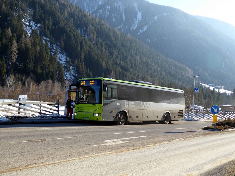 - Lo skibus o autobus di linea collega S. Gertraud in fondo alla Val d’Ultimo, S. Nikolaus, S. Walburg, S. Pankraz, Lana e Merano con la stazione a valle della Schwemmalmbahn a Kuppelwies.