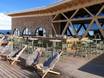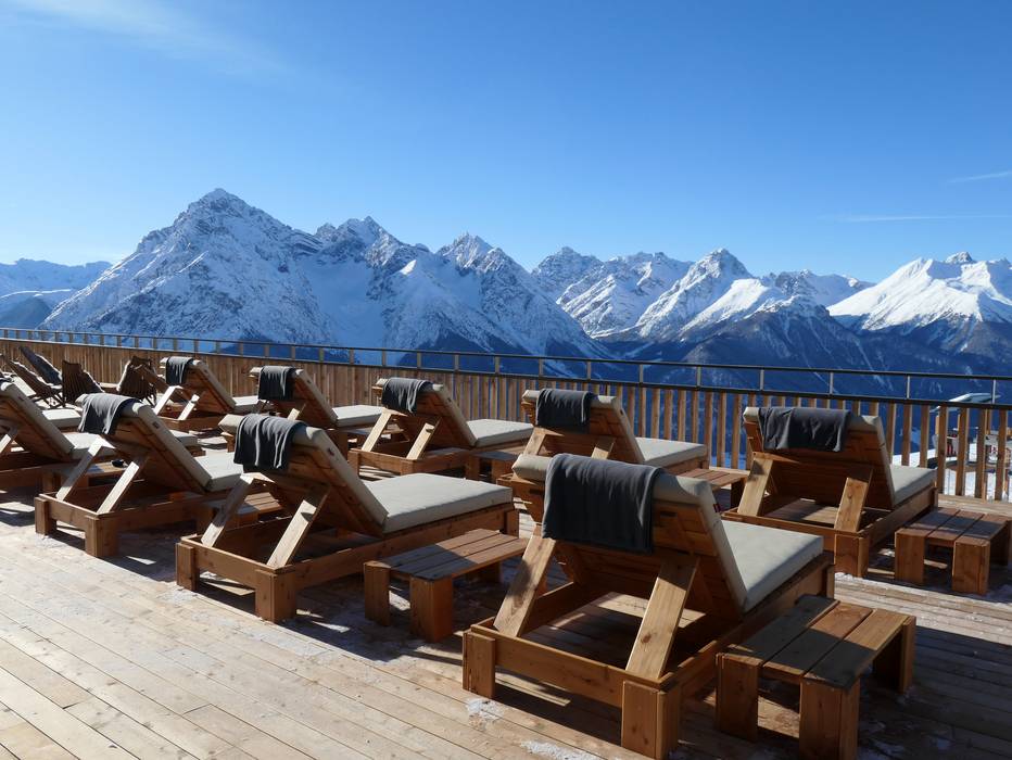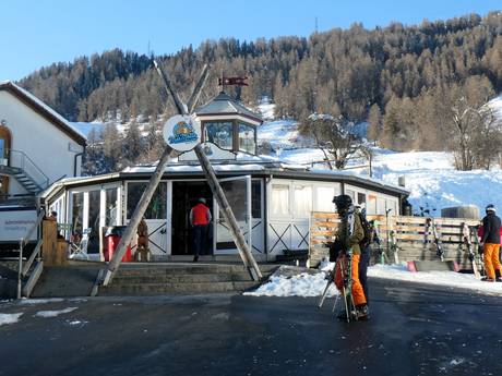 Après-Ski (Rifugi, Bar, Bar all'aperto, Locale, Party) Scuol - Motta Naluns Alle stazioni a valle sono disponibili accoglienti bar dove concludere la giornata sugli sci. All'interno del comprensorio sciistico si possono anche trovare schirmbar o terminare la giornata rilassandosi sulle sedie a sdraio al sole.