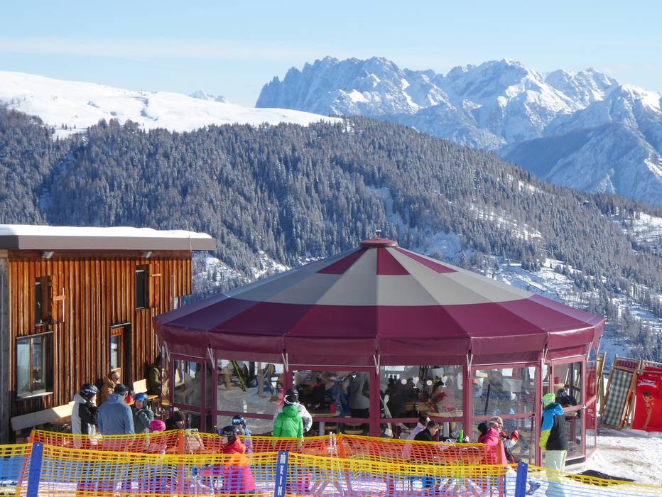 Nelle Schirmbar alla stazione a monte e a valle della cabinovia si può concludere piacevolmente la giornata sugli sci.