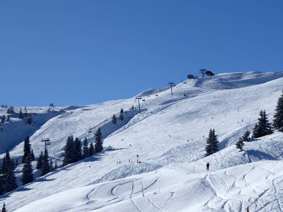 Partenza dal punto più alto del comprensorio sciistico presso il Top of Alpbachtal lungo la seggiovia a 6 posti Hornbahn 2000 - Discesa Schatzberg fino a valle ad Auffach
