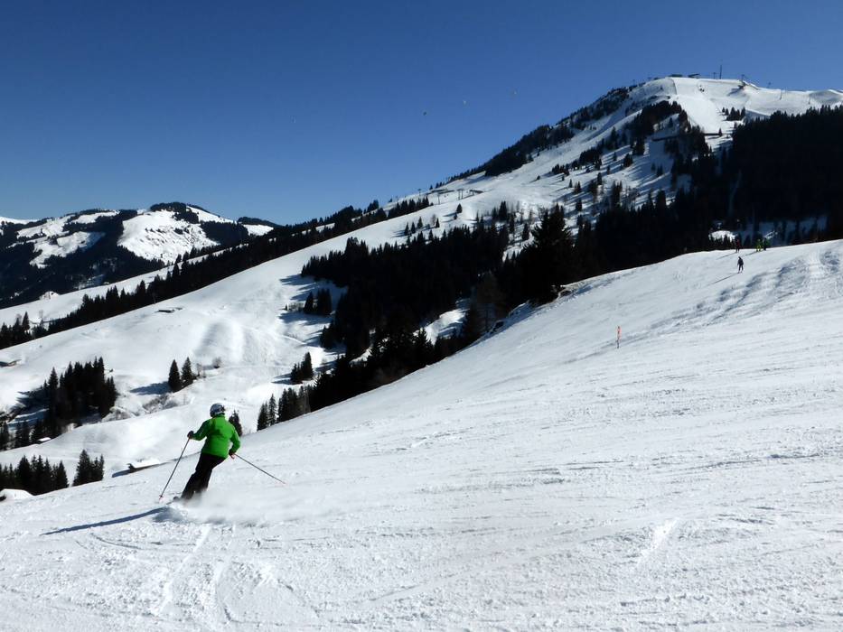 Enorme! Non si può che essere d'accordo con il motto della SkiWelt Wilder Kaiser-Brixental. L’area sciistica si estende sui paesi di Brixen im Thale, Westendorf, Hopfgarten, Itter, Söll, Scheffau, Ellmau e Going e offre infiniti chilometri di piste. Le sue dimensioni sono tra le più grandi d’Austria. In totale ci sono 21 discese a valle e a Söll si trova anche il più grande comprensorio di sci notturno dell’Austria. Il punto di riferimento della zona sciistica è la Hohe Salve (1829 m), da cui si gode una vista mozzafiato sul Wilder Kaiser.