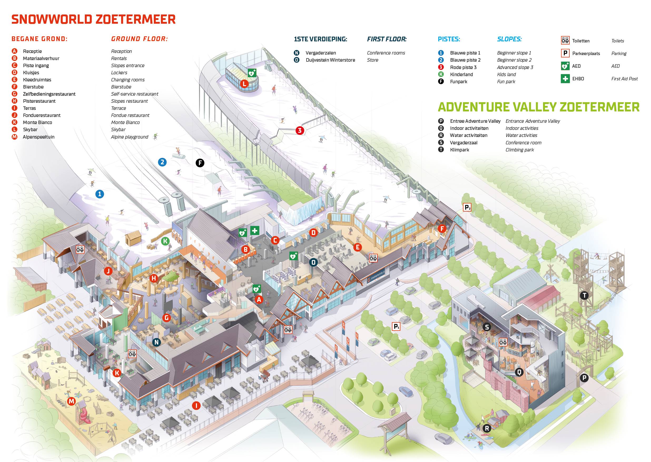 Orientamento (Mappa delle piste, Pannelli informativi, Segnaletica) e sicurezza nel comprensorio sciistico SnowWorld Zoetermeer