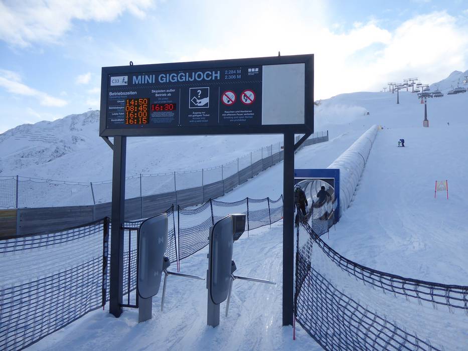 Impianti del comprensorio sciistico Sölden Sölden offre impianti all’avanguardia per una risalita rapida e confortevole sulla montagna. La cabinovia a 10 posti Giggijoch è la funivia più potente al mondo, con una capacità di trasporto di 4.500 persone all’ora. Il collegamento tra l’area sciistica invernale e i comprensori sciistici sui ghiacciai avviene tramite le funivie di collegamento (modernissime seggiovie a 8 posti) "Golden Gate to the Glacier". I BIG 3 di Sölden – tutte vette oltre i tremila metri – sono raggiungibili con moderni impianti di risalita. Ad esempio, la Gaislachkoglbahn, con due impianti moderni, porta gli sciatori sulla montagna simbolo di Sölden, il Gaislachkogl (uno dei BIG 3). Le funivie vantano ben tre record: la prima sezione, una cabinovia a otto posti, ha la più alta capacità di trasporto al mondo per una cabinovia di questo tipo, con 3.600 persone all’ora. La seconda sezione, una funivia 3-S con cabine da 30 persone, detiene due record: è la funivia 3-S più alta al mondo (3.040 m) e dispone di un sistema di evacuazione unico nel suo genere. In caso di evacuazione, gli ospiti non devono più lasciare le cabine e vengono trasportati in sicurezza alle stazioni.