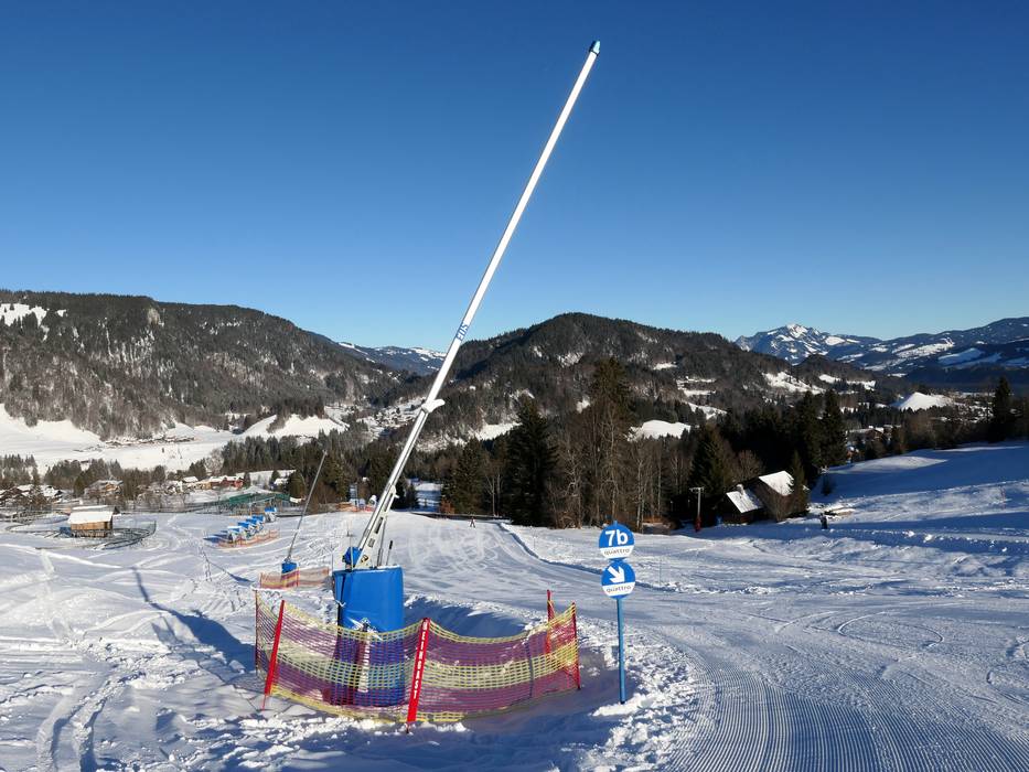 Durante l'ammodernamento degli impianti è stato installato un efficiente sistema di innevamento programmato. Nella regione di Oberstdorf/Kleinwalsertal cade anche molta neve naturale. In questo modo è garantita un'elevata sicurezza della neve.