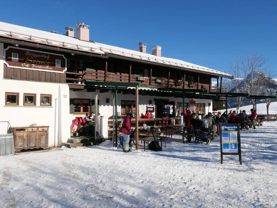 Accogliente e caratteristica baita con specialità dell’Allgäu. È possibile osservare direttamente la preparazione dei piatti. Formaggi e carne provengono dalle proprie produzioni locali. Dalla terrazza soleggiata si gode di una splendida vista sulla valle.