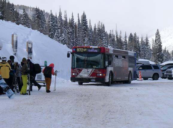 - L'area sciistica di Solitude è facilmente raggiungibile con i mezzi pubblici. Lo skibus della Utah Transit Authority (UTA) arriva fino all'area sciistica di Solitude. È gratuito per i possessori di skipass stagionale.