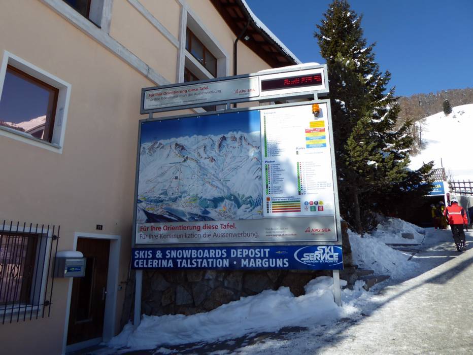 | Nota: Gli orari d'esercizio sono indicazioni generali fornite dal comprensorio sciistico St. Moritz - Corviglia e possono variare in funzione di circostanze particolari, giorni settimanali, vacanze scolastiche e festività. | |