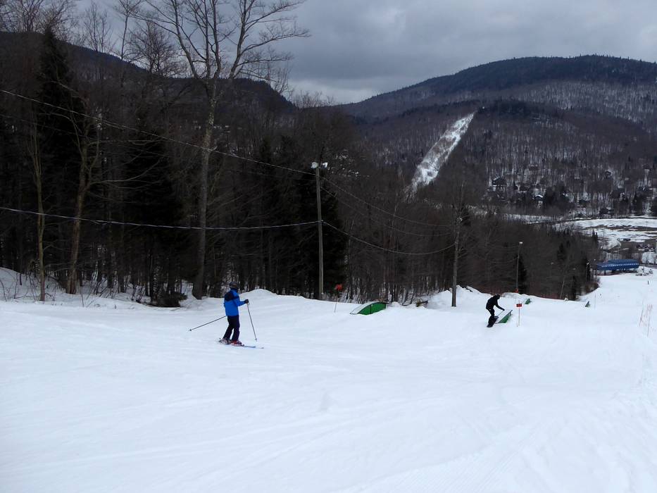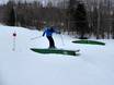 Lo snowpark si trova nella parte bassa dell’area sciistica Stoneham sulla pista La Rock’n’Roll. È ideale per principianti e bambini.
