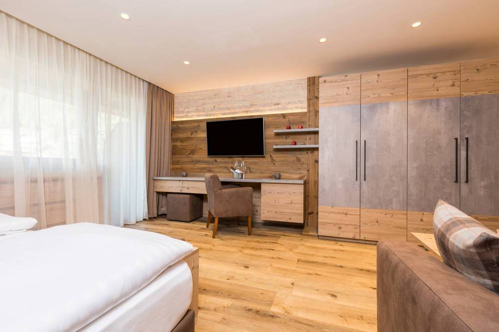 Vivete un legame speciale con la natura e la tradizione nelle nostre confortevoli camere, arredate in parte con legno di larice locale. In hotel, decorazioni amorevoli in pietra, legno e vetro, trofei di caccia e il moderno fascino tirolese creano un’atmosfera accogliente per la vostra vacanza.