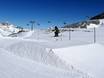 Alla stazione a monte Gamsgarten, i bambini principianti vivono il piacere dello sci giocando nel Big Family Kinderland, sul tappeto magico coperto (n. 1), nonché nello slalom per bambini, sulla giostra di pneumatici e con il mammut di neve.