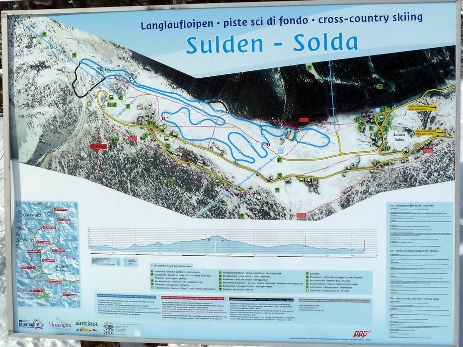 La pista da fondo omologata FIS (1850 m - 1940 m) sul fondovalle intorno a Solda è particolarmente sicura per quanto riguarda la neve e offre un panorama magnifico. La pista di neve naturale, preparata da novembre fino alla fine di aprile, è ideale per scivolare dolcemente con gli amici, sia in stile classico che skating, oppure per un allenamento impegnativo. Tutti gli accessi alla pista si trovano nelle immediate vicinanze degli hotel.