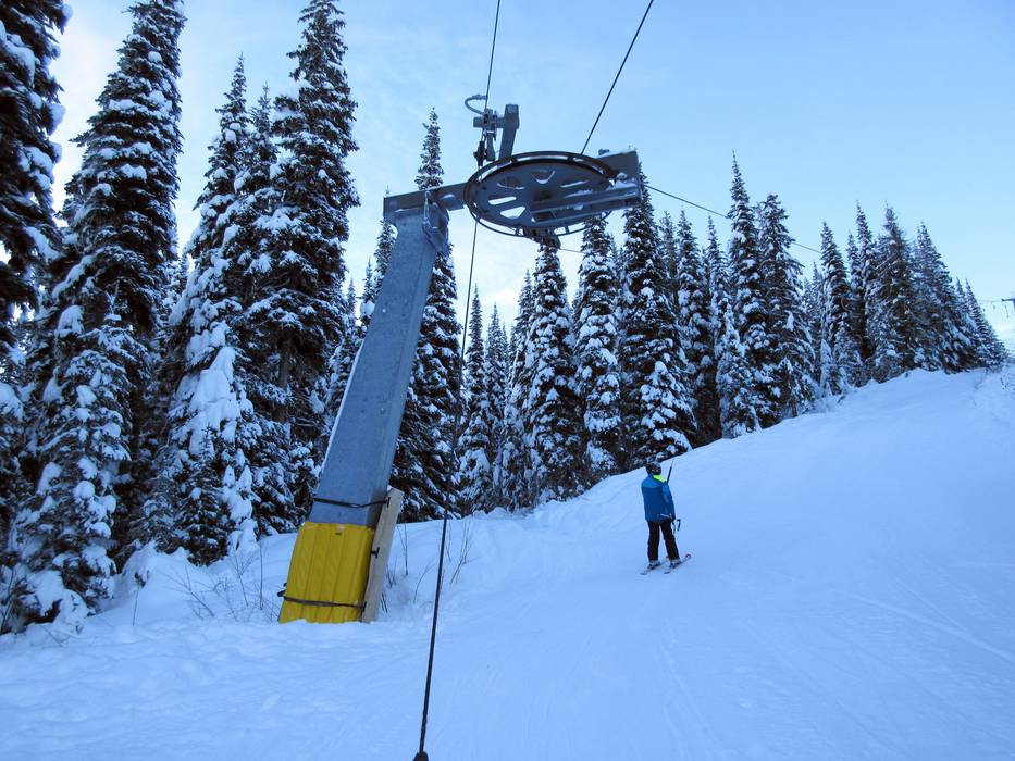 Sciovia ad ancora/Skilift con piattelli nel comprensorio sciistico Sun Peaks